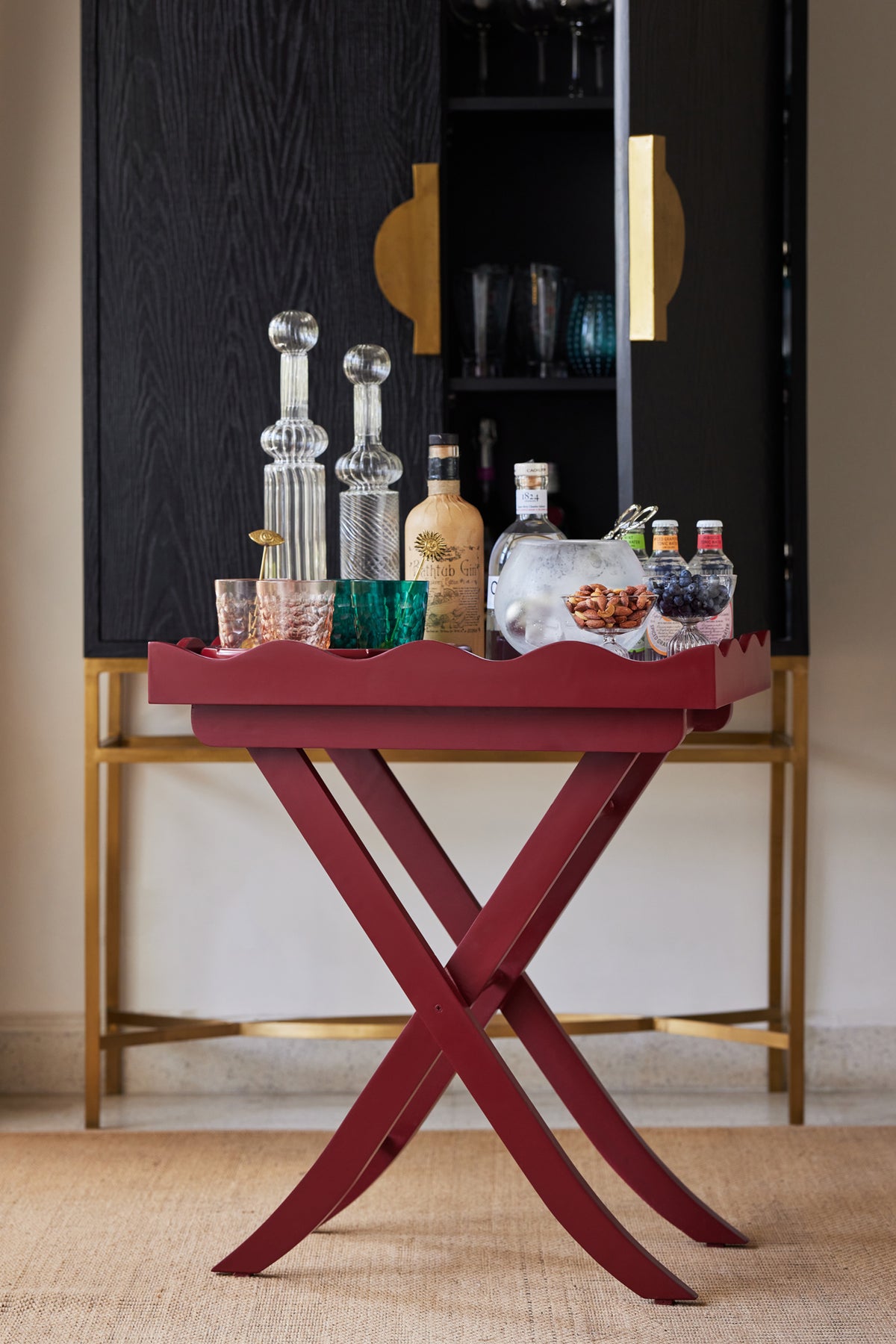 A delightful mix of function and flair, the Scalloped Tray Table brings a cheerful twist to any room. With its playful scalloped edges and glossy lacquered finish, this foldable wonder is as handy as it is head-turning. Use it as a service station for drinks by the bar, a perky side table, or a catch-all for life’s little treasures — then simply fold it away when not in use. Light, lovely, and full of charm, it’s perfect for both laid-back lounging and lively get-togethers.