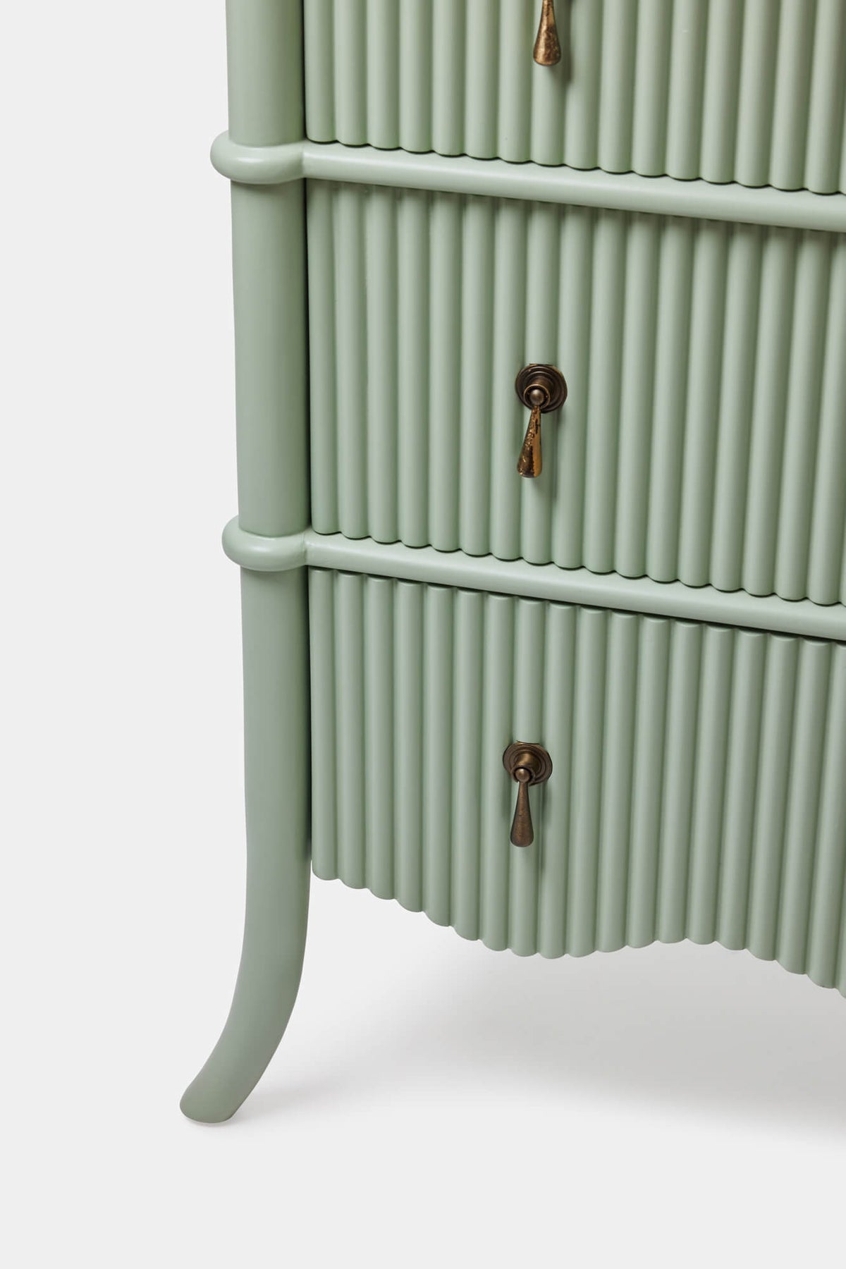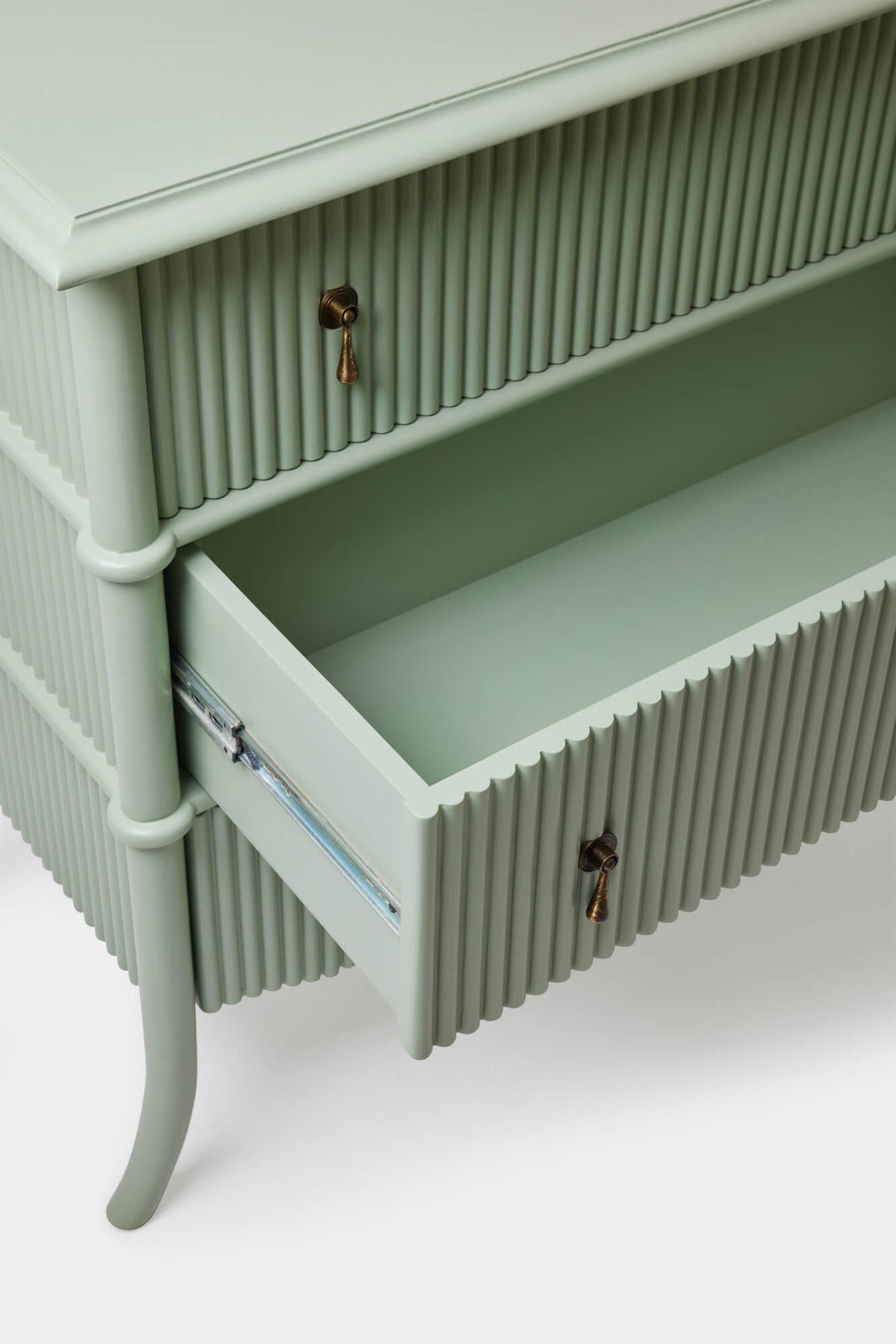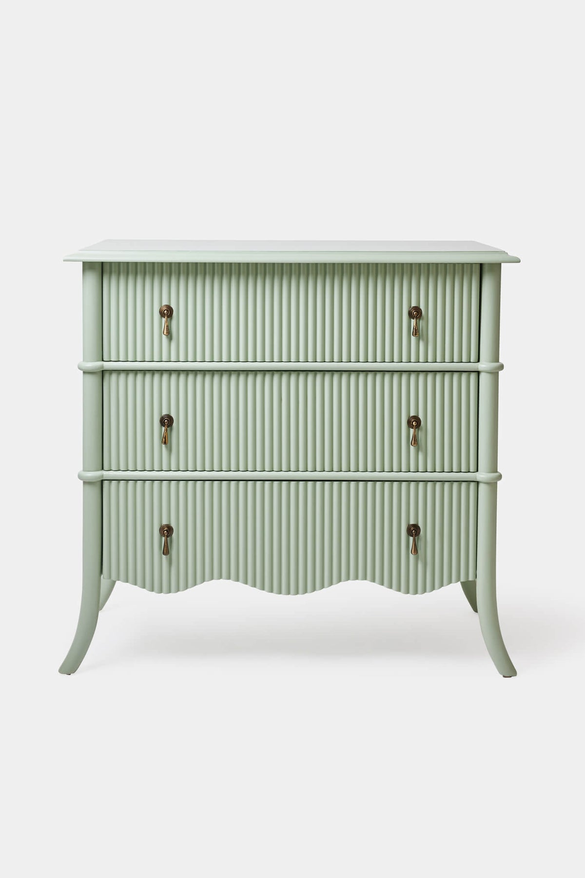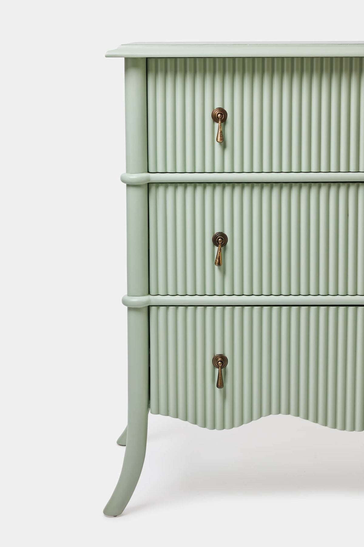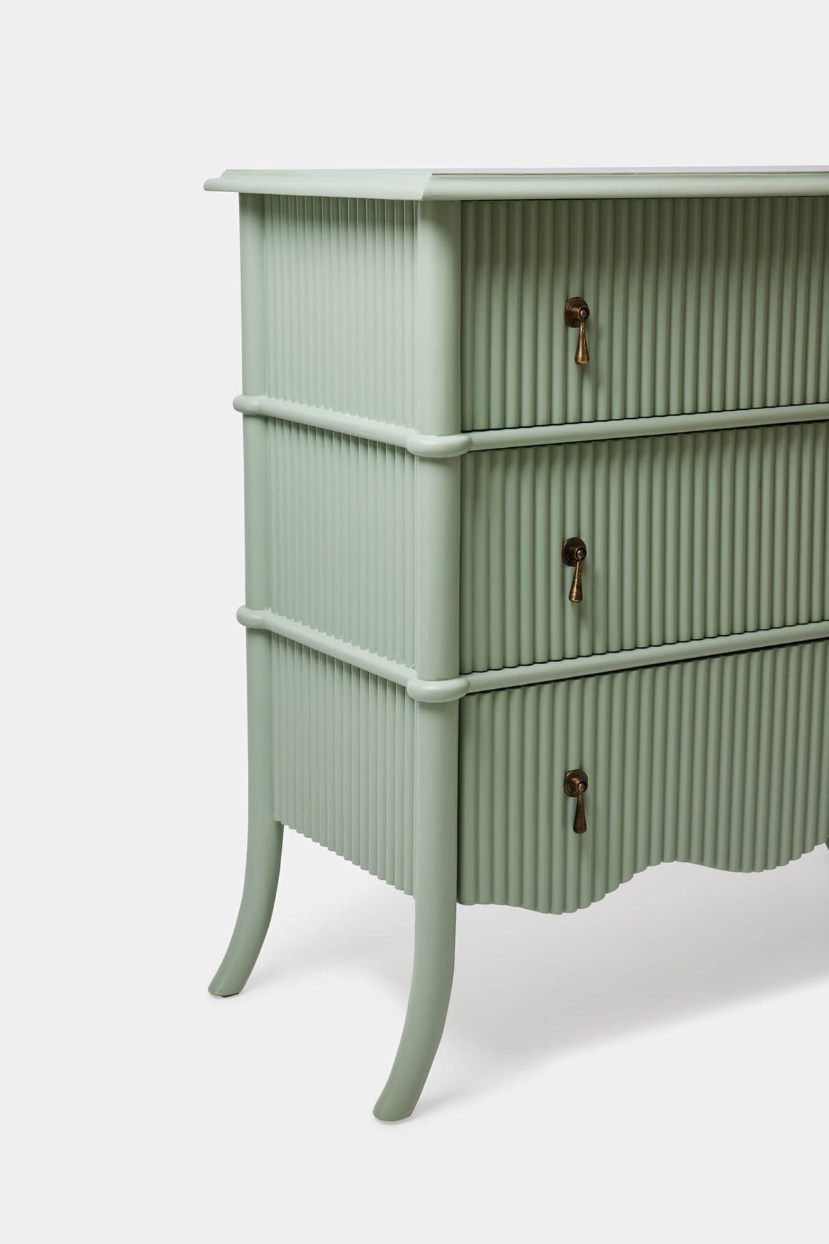 Regular price Rs. 160,000.00A graceful nod to vintage silhouettes, this scalloped-front dresser pairs fluted drawer detailing with curvaceous charm. Its softly scalloped apron dances along the base like the hem of a twirling skirt, while the vertically fluted drawer fronts bring rhythm and refinement to the overall form. Finished in a delicate sage green, it adds a whisper of colour and old-world charm to any space.