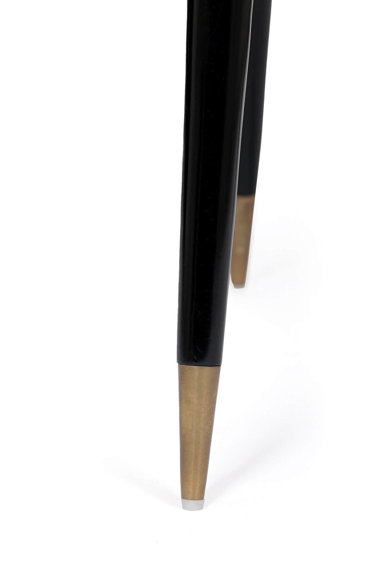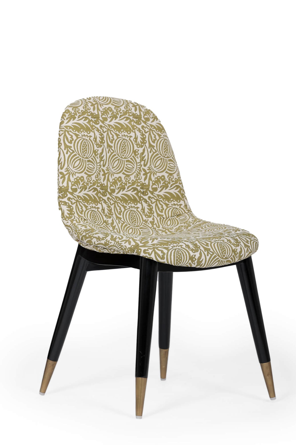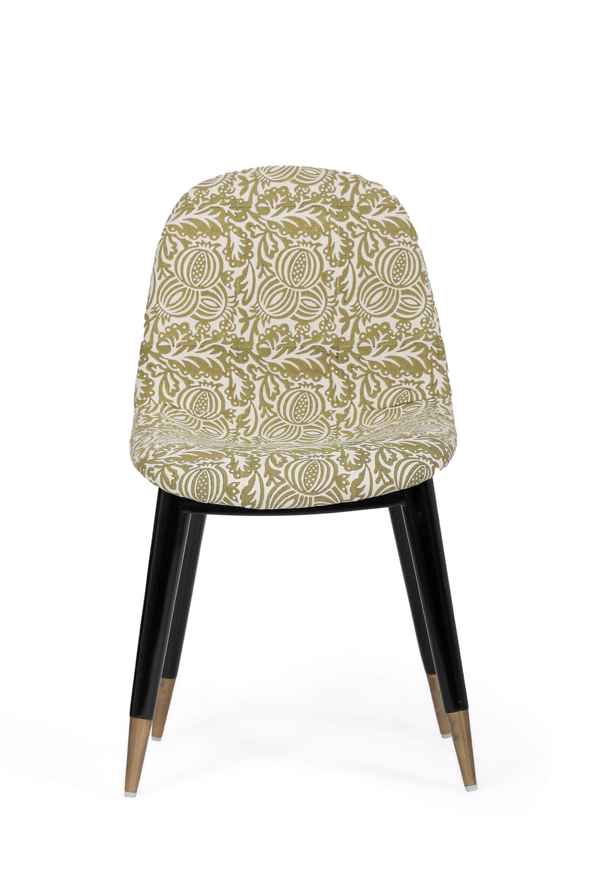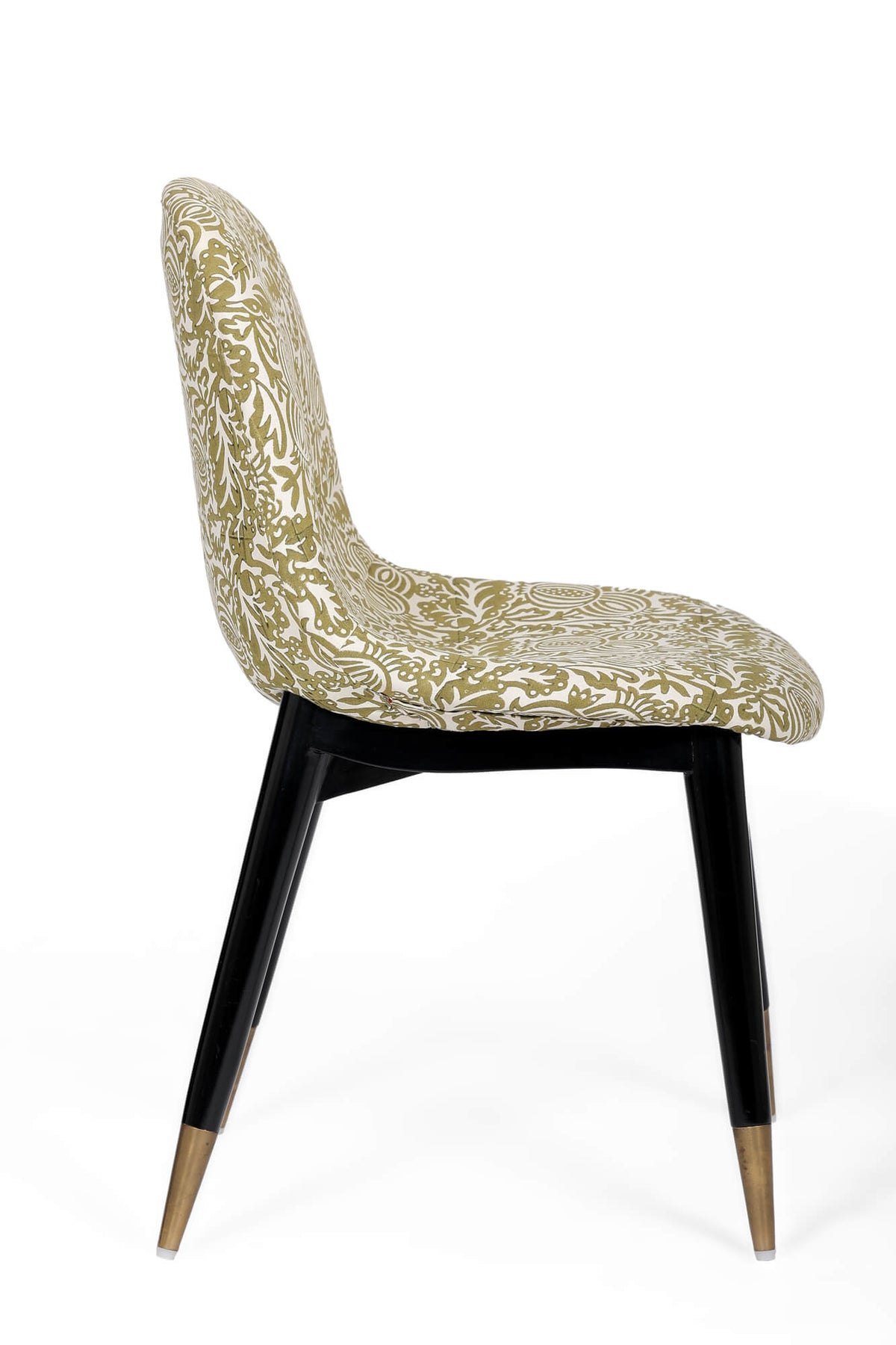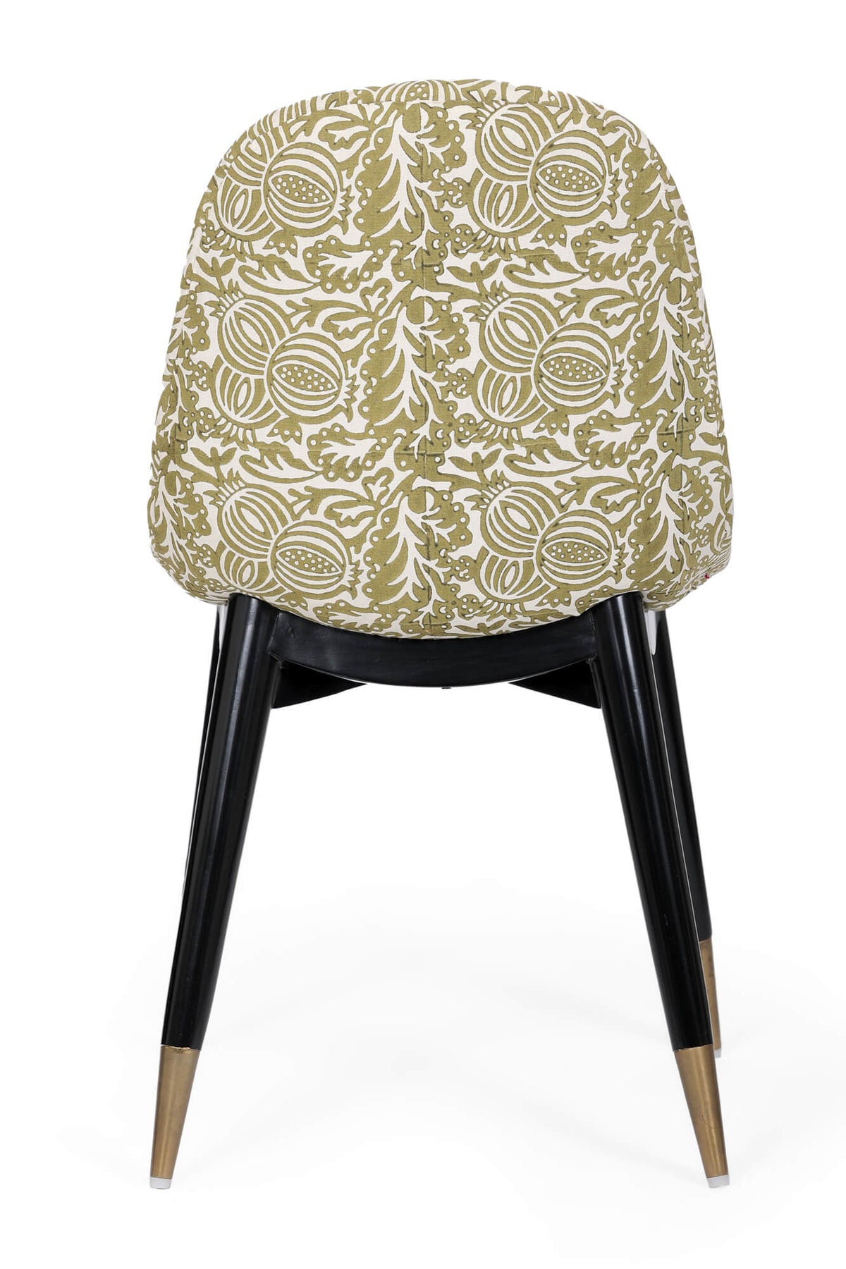 Named after New York’s eclectic Delancey Street, the Delancey Dining Chair brings together old-world charm and contemporary flair. With its sculpted silhouette, intricate olive-green print, and tapered black legs tipped in brass, it’s a statement in both style and substance. Perfect for dining spaces that thrive on personality and bold detail.