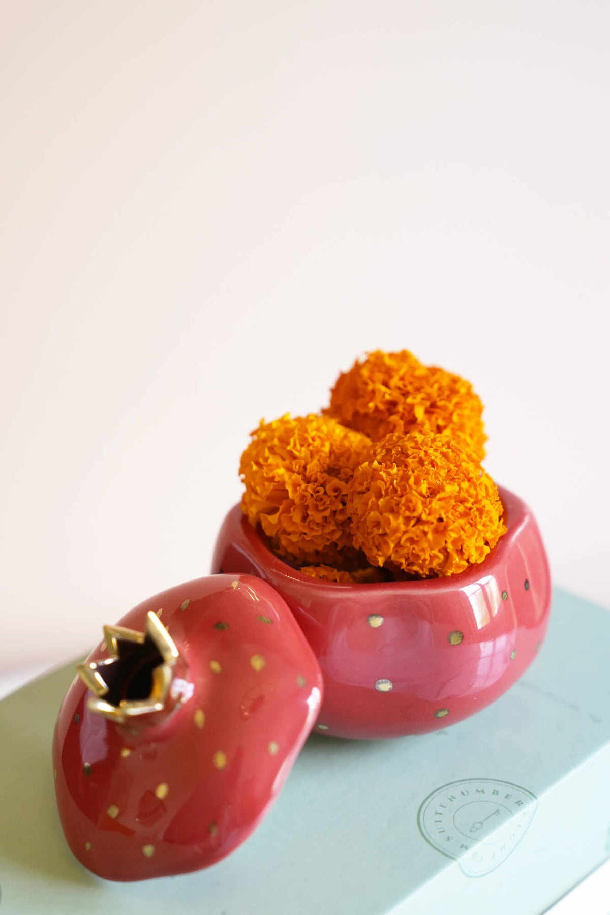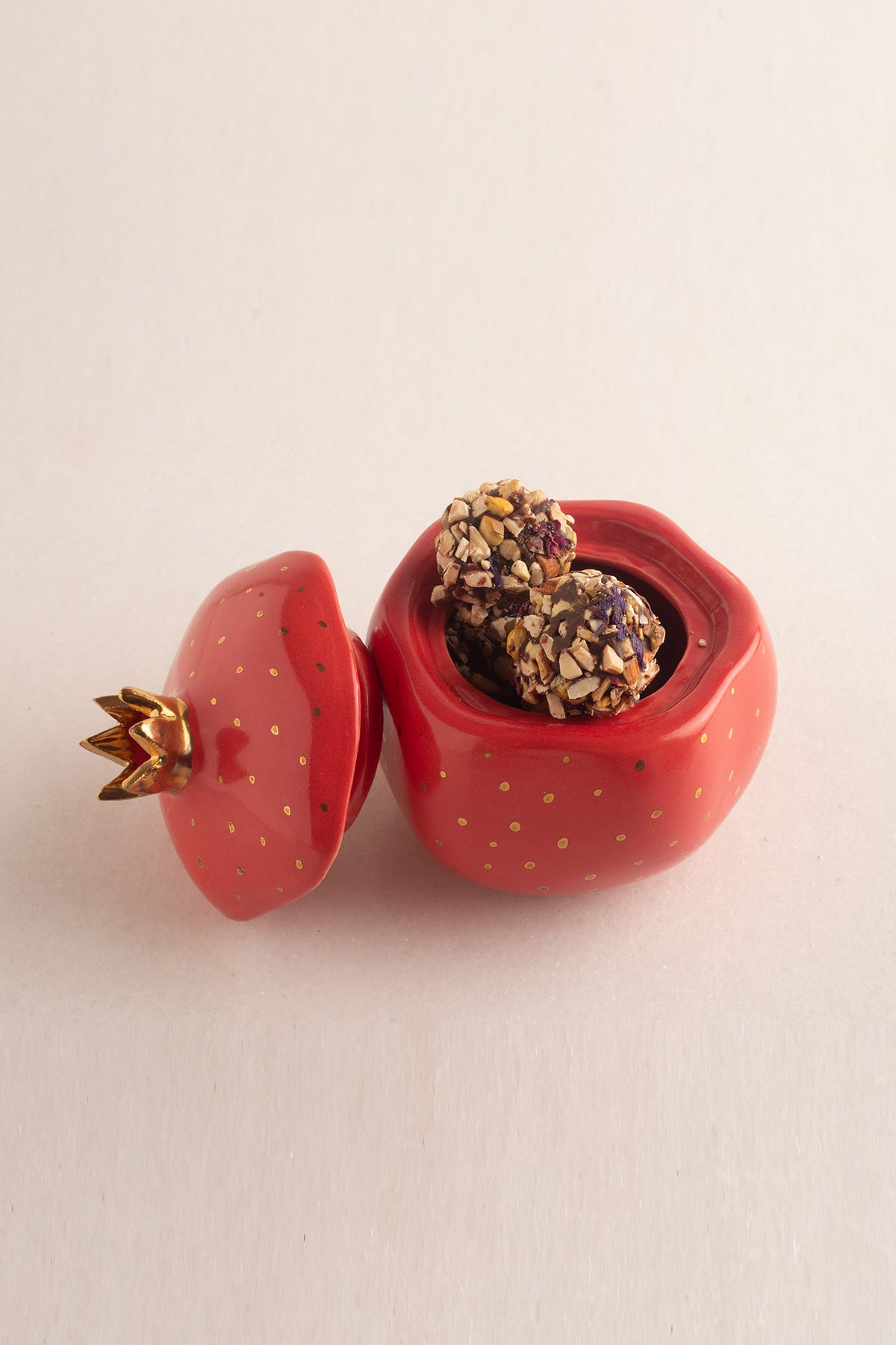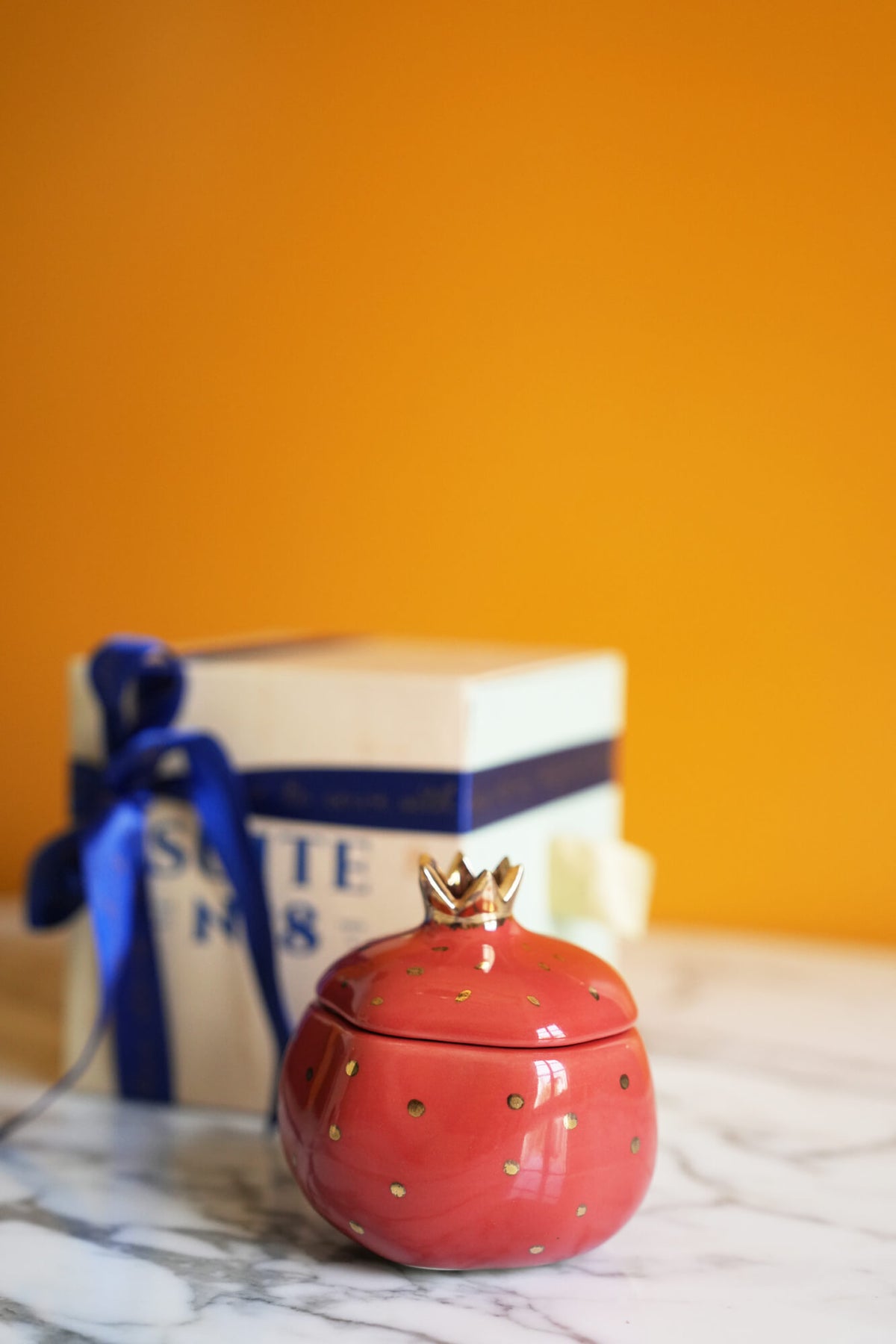 A signature Suite No.8 favourite for years, this charming ceramic pomegranate is more than just a jar — it's a little bundle of joy. Handcrafted by skilled artisans and sprinkled with golden dots, it captures the spirit of celebration, prosperity, and sweet new beginnings. Crowned in gold and bursting with symbolism, it’s perfect for holding trinkets, treats, or tiny secrets.