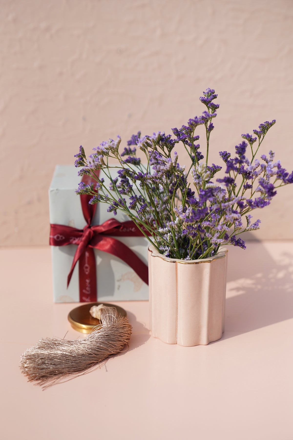 Regular price Rs. 500.00The Mehrab Jar is a sculptural ceramic piece finished in a soft blush pink and paired with a brass lid. Its fluted form gives it presence without feeling heavy, making it easy to place on a shelf, bedside, or table. Use it to store small essentials or let it stand on its own as a decorative accent. Subtle in colour and simple in function, the Mehrab Jar works across spaces and styles.