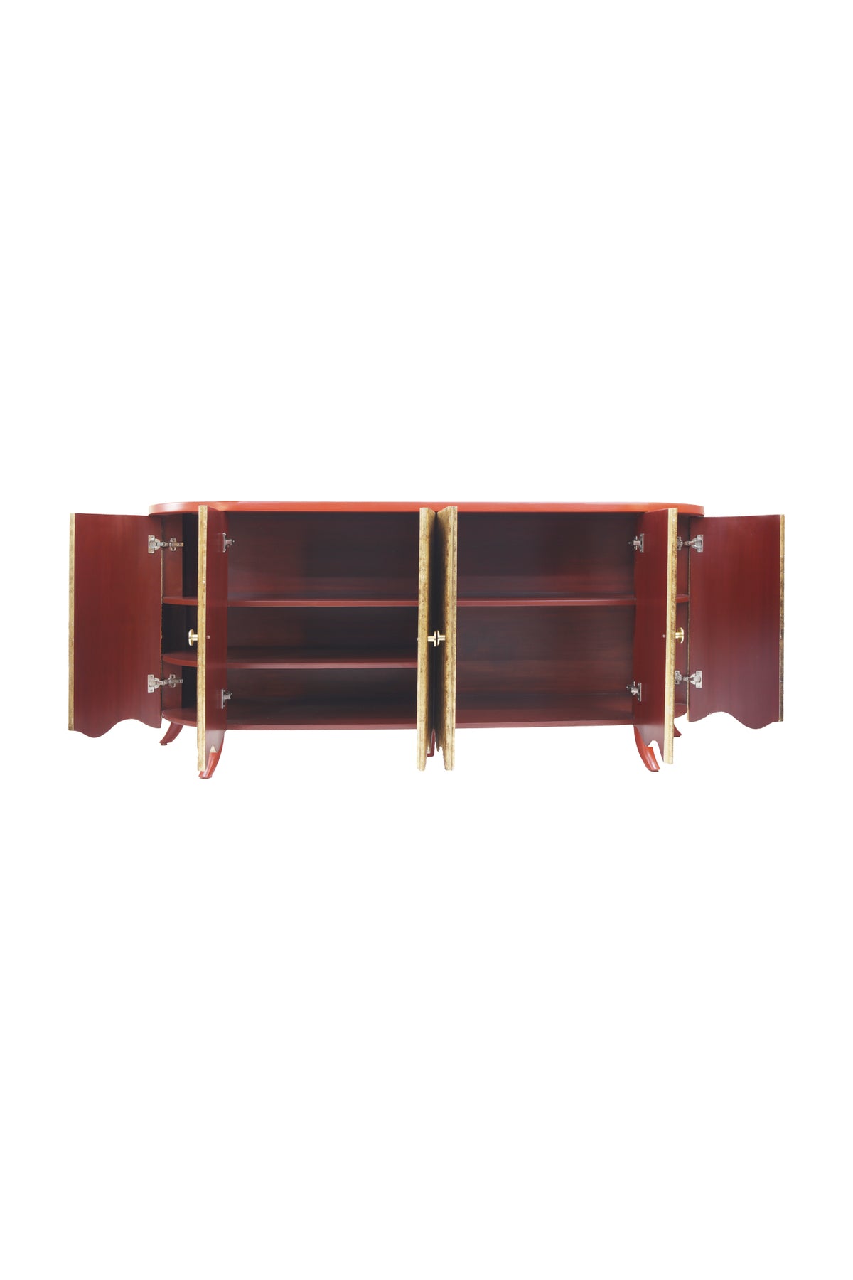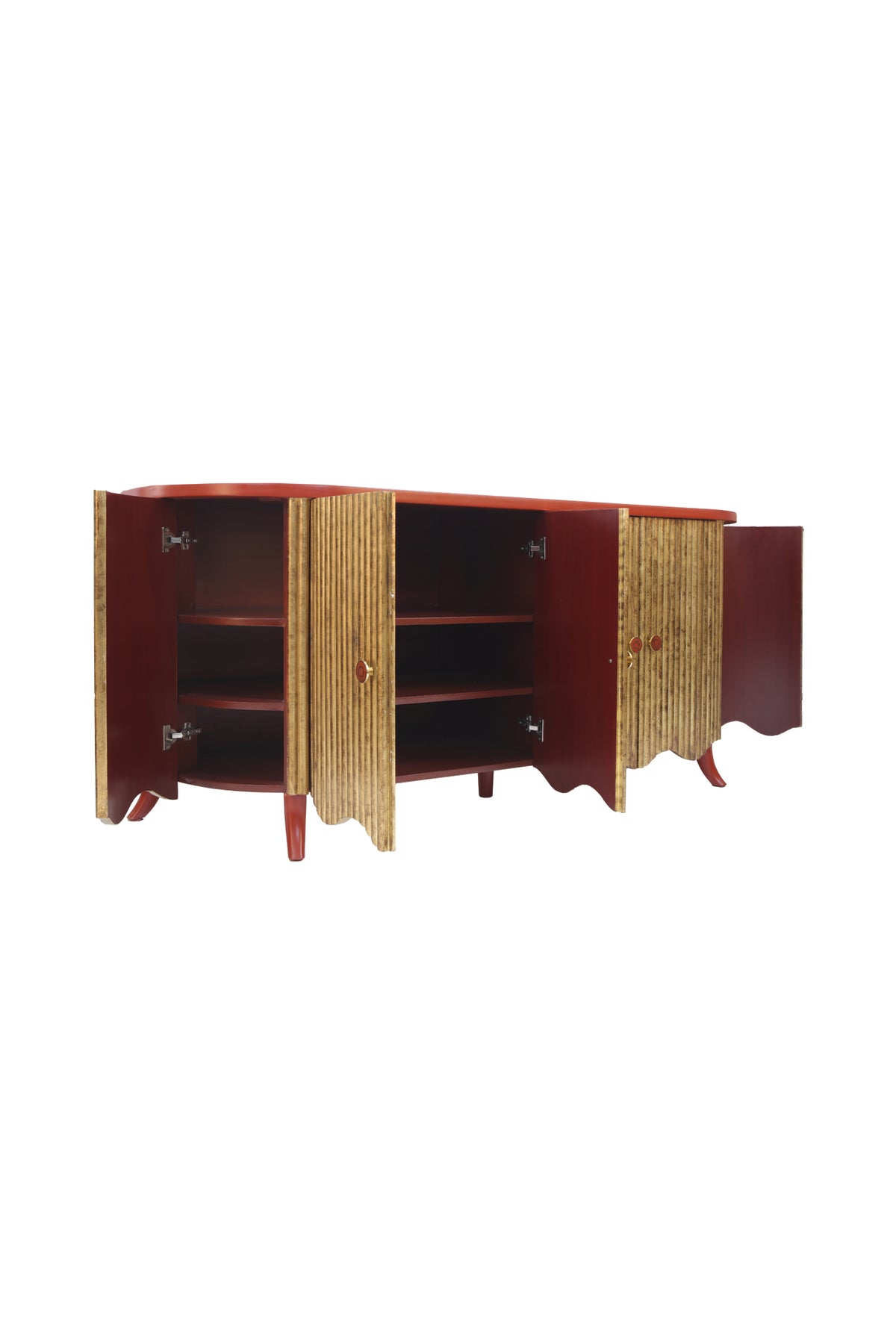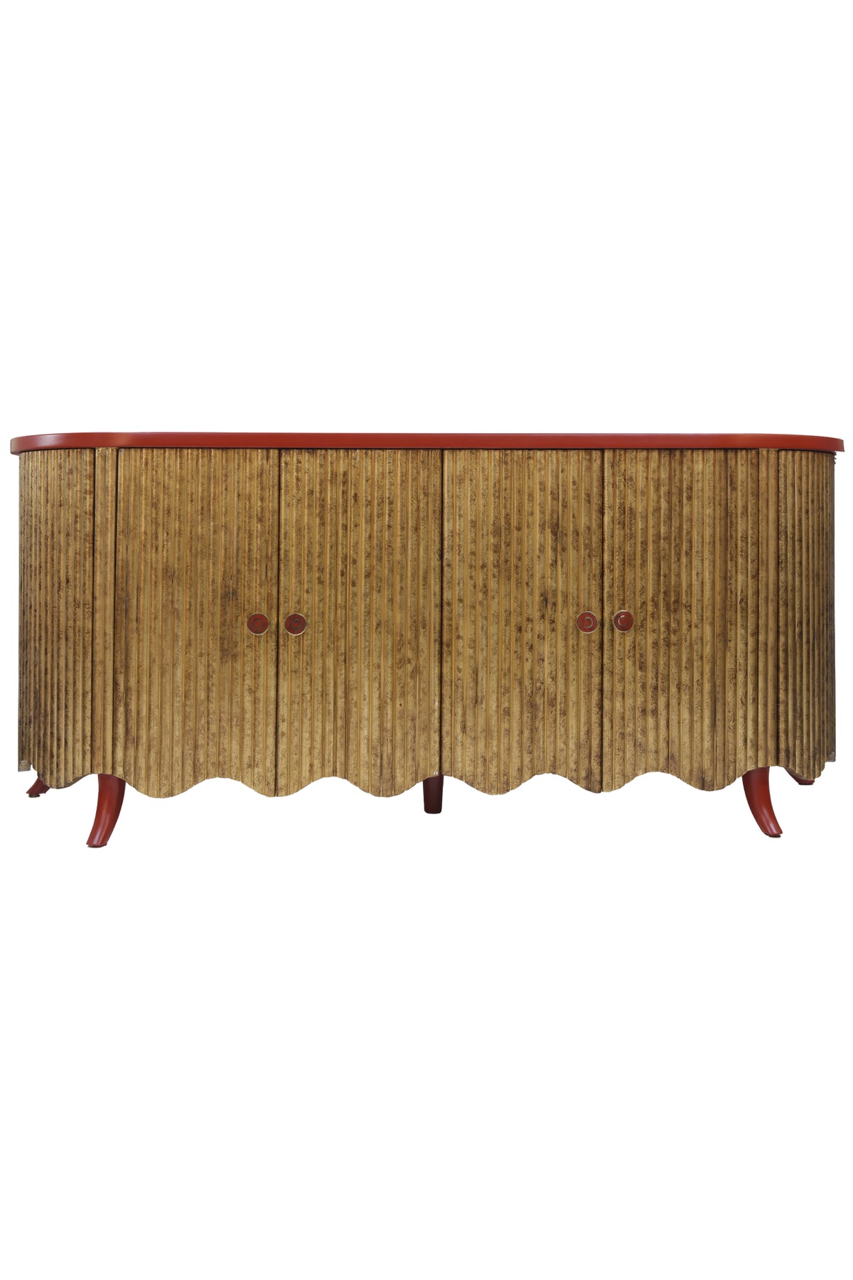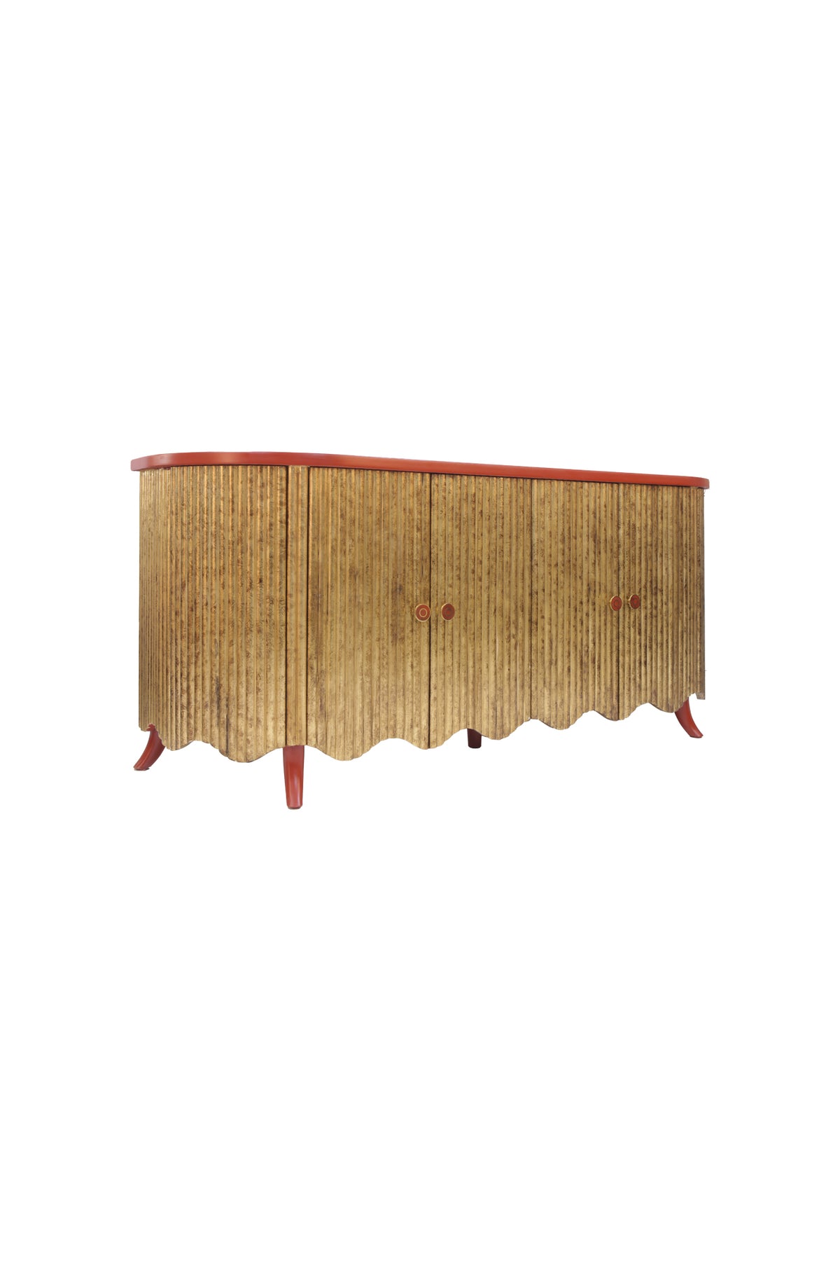Meet the Scalloped Bar Cabinet — curvy, confident, and dressed in antique gold. A sculpted silhouette with sides that swing open for extra storage (and a little theatre). Finished with a rust-toned countertop and matching legs that add the perfect pop of mood and mischief. A little drama, a lot of charm, and always the life of the party.